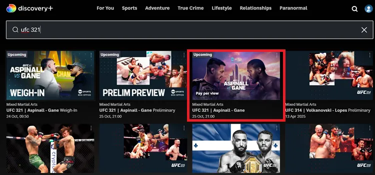 Step 5: Search for UFC 321 and choose the event.ย