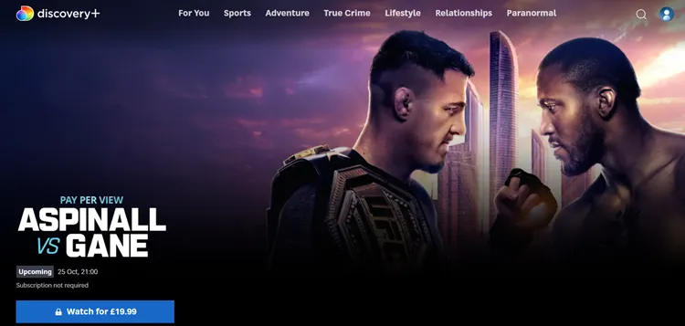 Aspinall vs. Gane will be available live in Ireland exclusively on TNT Sports Box Office for โฌ29.99 through Sky Ireland via your Sky box, EE TV Player, or Virgin Media TV.